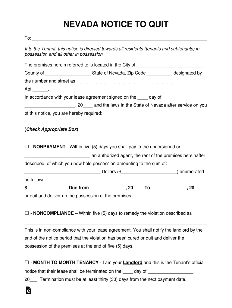 Get the free Nevada Eviction Notice to Quit Form