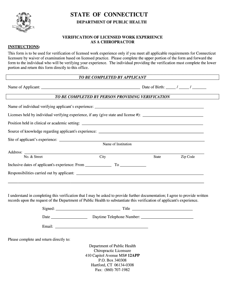 DEPARTMENT OF PUBLIC HEALTHVERIFICATION OF LICENSED WORK EXPERIENCE