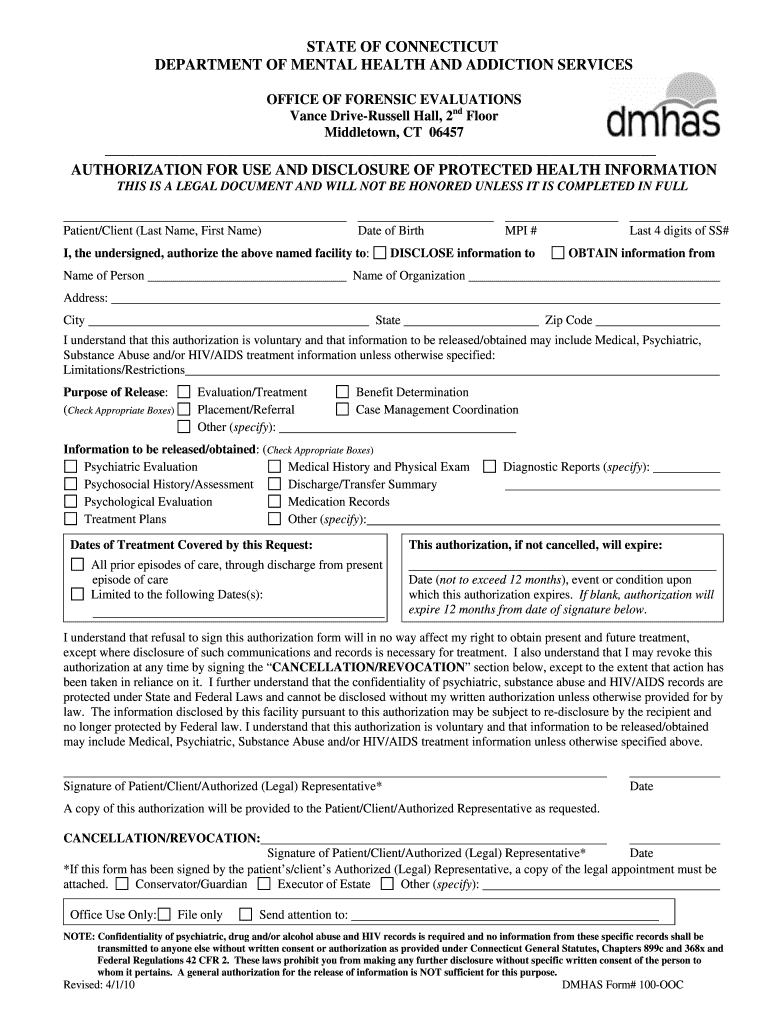 Get the free DMHAS: Client Authorization Forms - CT.gov