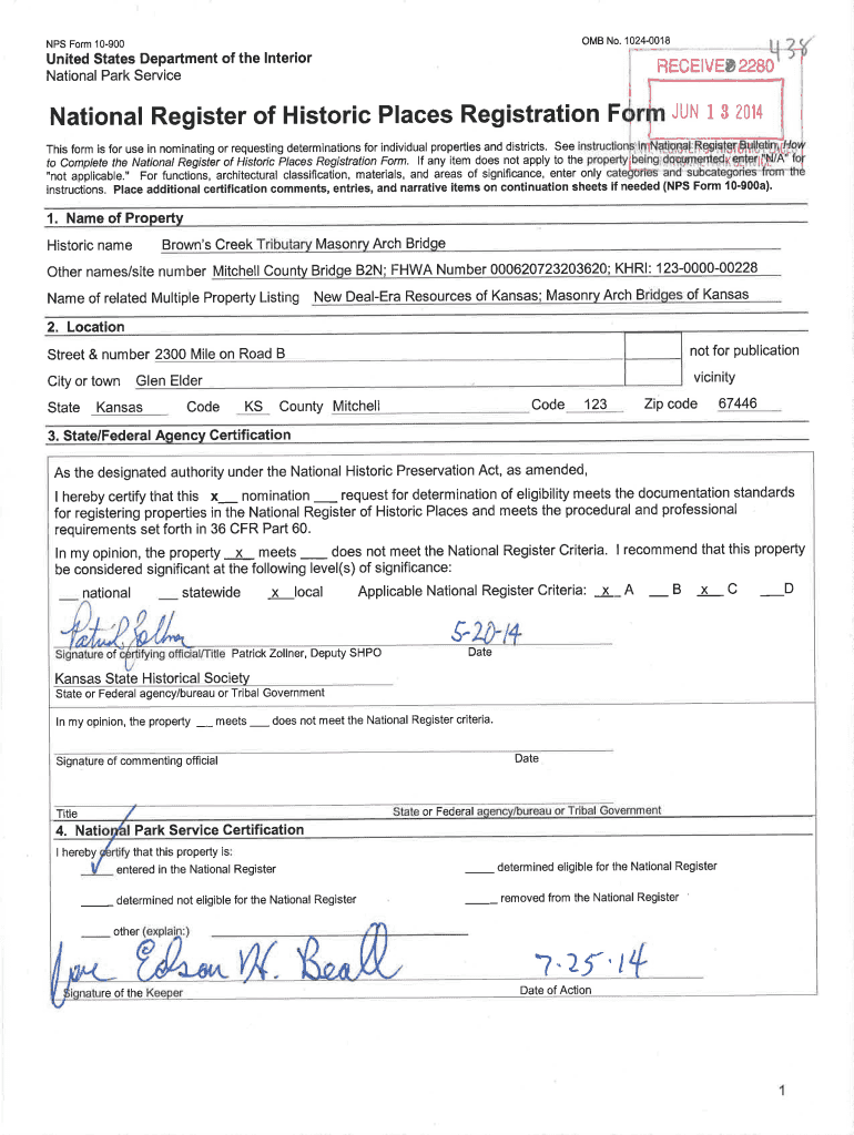 Get the free National Register of Historic Places Registration F1r JUN 13 2014