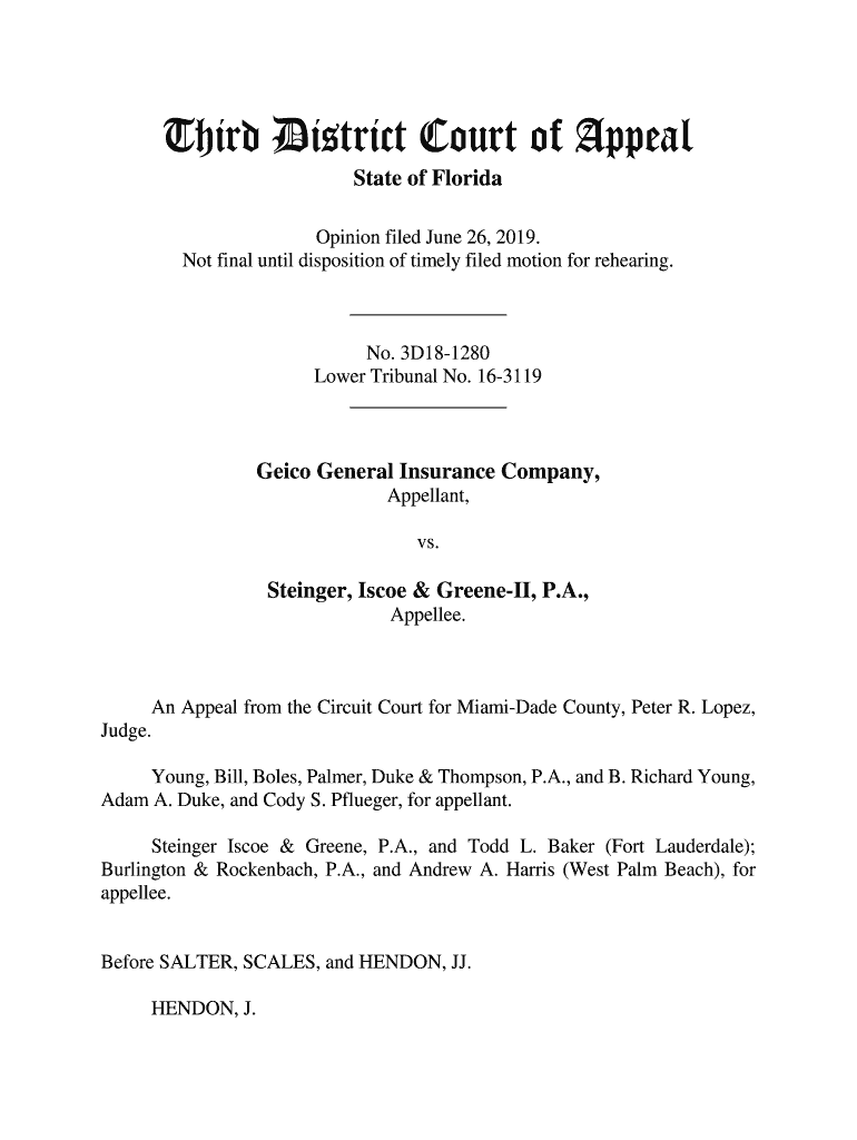 Third District Court of Appeal State of Florida Opinion filed June 26, 2019. Not final until disposition of timely filed motion for rehearing. No. 3D181280 Lower Tribunal No. 163119 GEICO General