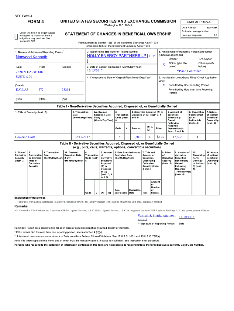 Get the free FORM 4 - Holly Energy Partners, LP