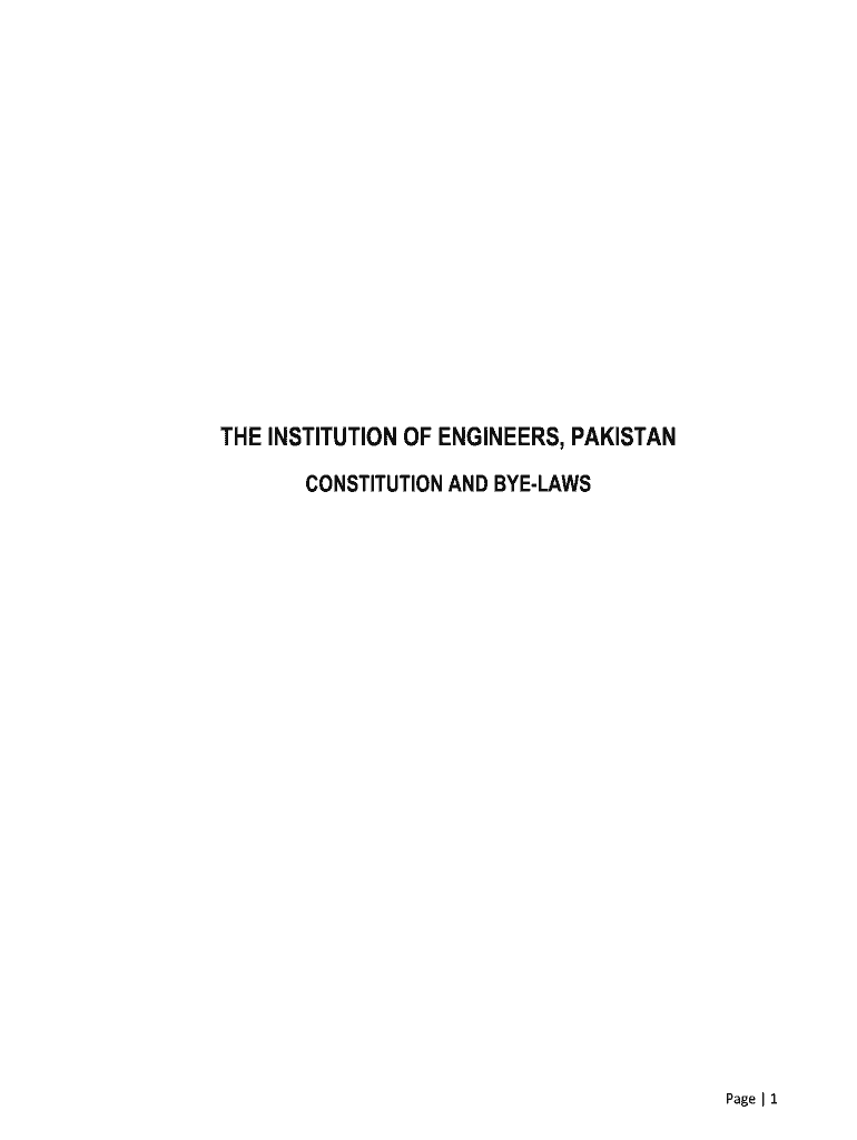 THE INSTITUTION OF ENGINEERS, PAKISTAN CONSTITUTION AND BYELAWSPage 1PARTI CONSTITUTION Page 2CONTENTSCONTENTS PREFACE PREAMBLEDefinitions CHAPTER 1CHAPTER 2 CHAPTER 3CHAPTER 4CHAPTER 5CHAPTER 6CHAPTER