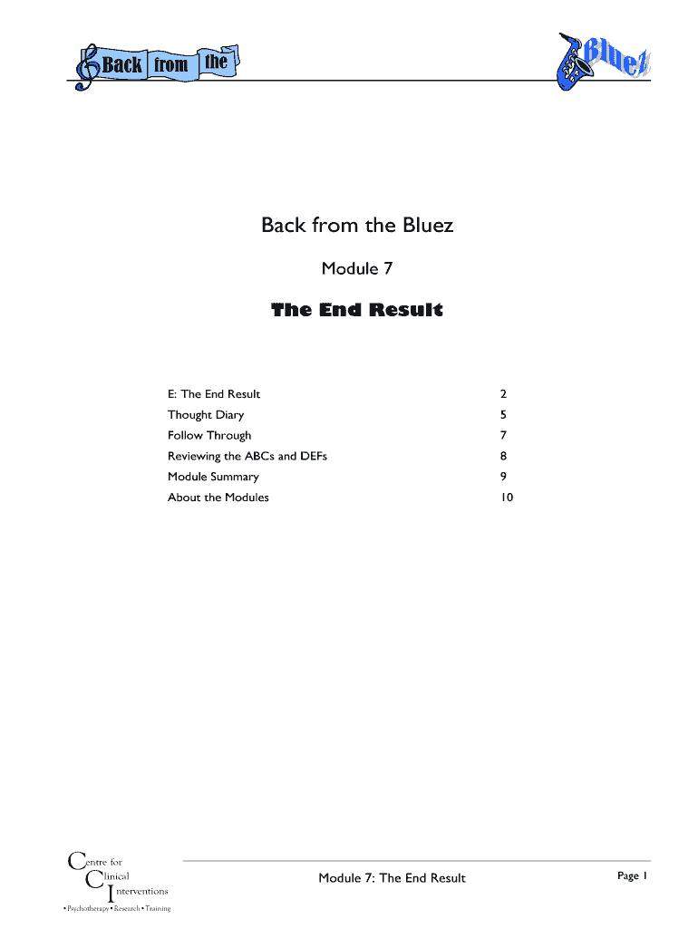 The End Result CCE: The End Result2Thought Diary5Follow Through7Reviewing the ABCs and DEFs8Module Summary9About the Modules10entre for