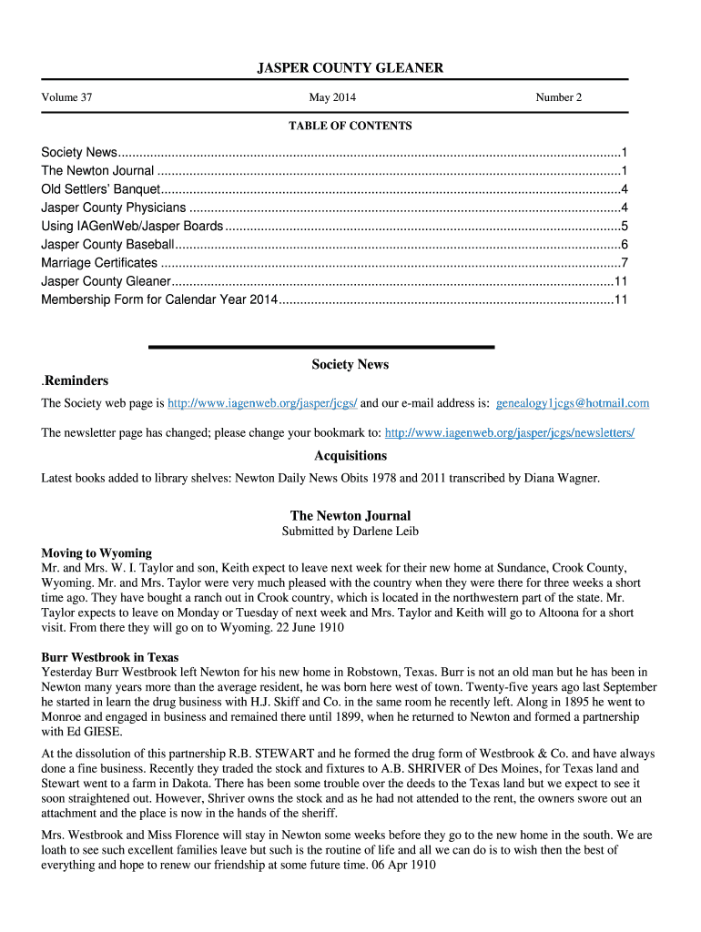 Start by obtaining the Jasper County Tribune/Newton Daily newspaper.