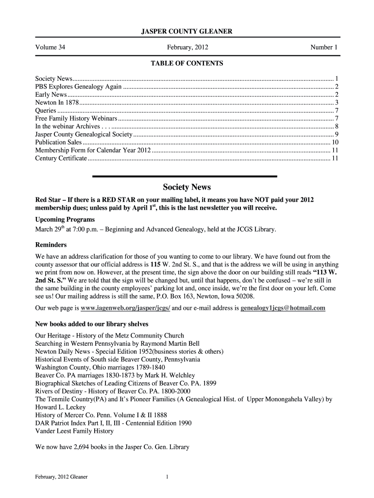 Fill out your jasper county genealogy ampamp online with pdfFiller!