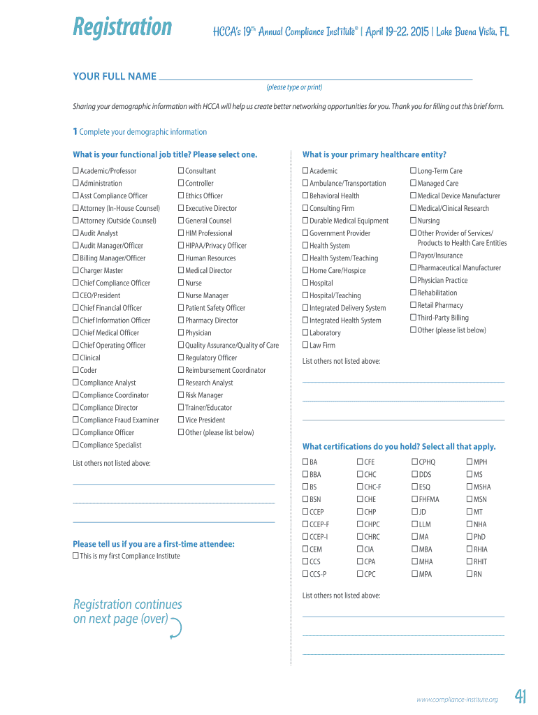 Get the free Register by January 7 - HCCA