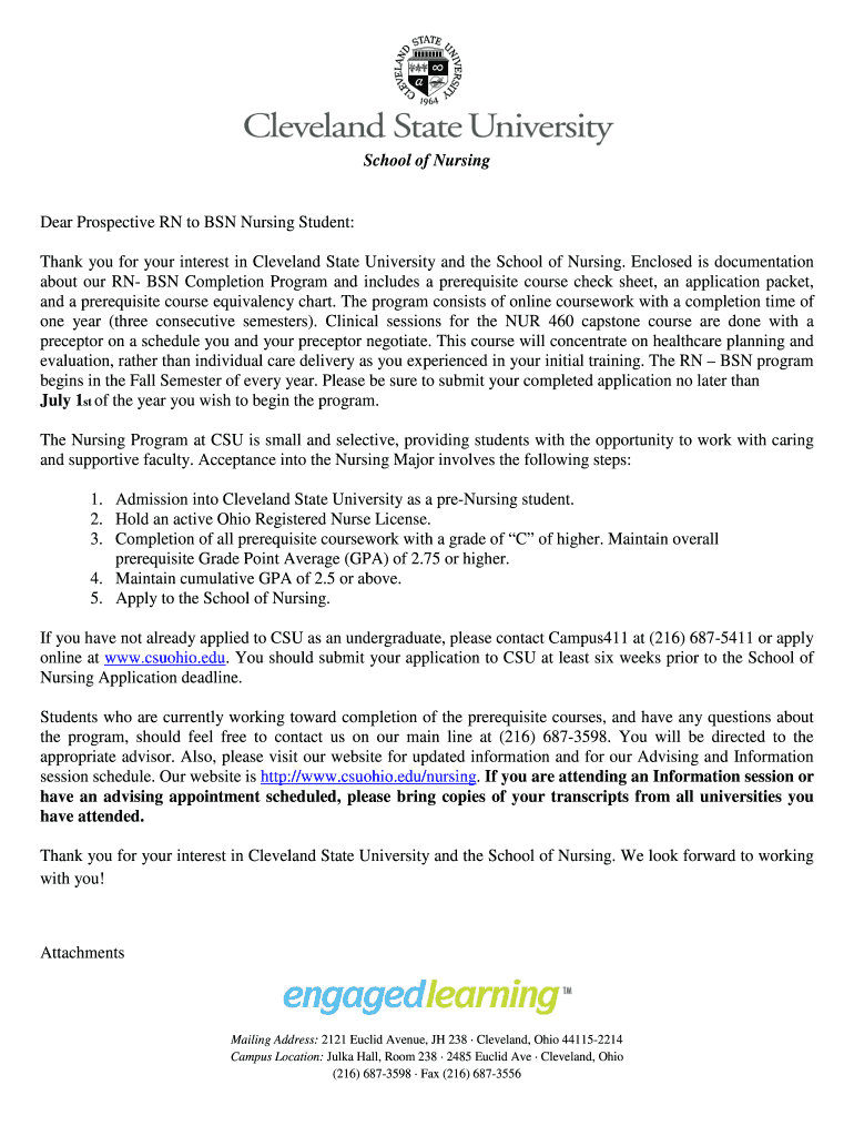Get the free Dear Prospective RN to BSN Nursing Student: Thank you for ...