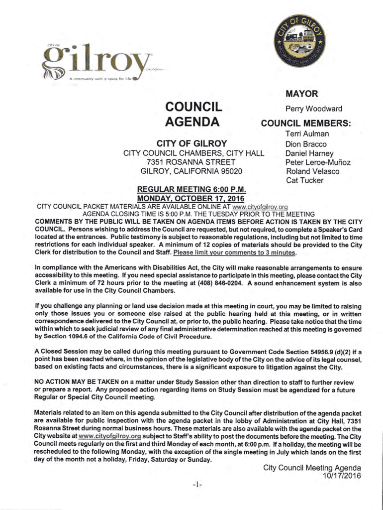 Fill out your city hallgilroy ca online with pdfFiller!