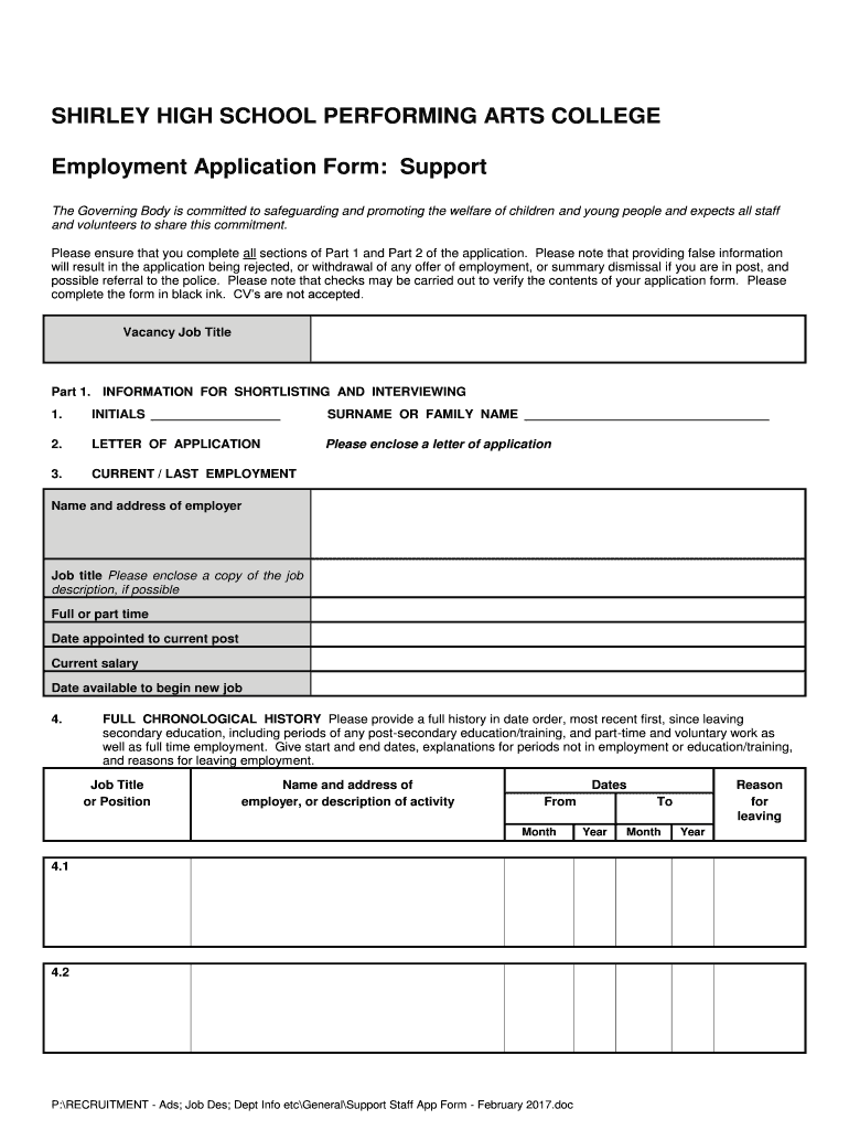 Employment Application Form: Support