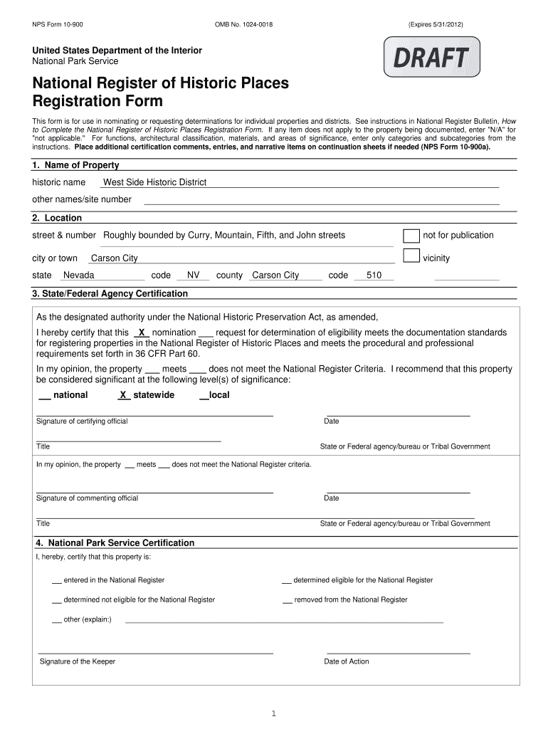 Get the free NPS Form 10 900 OMB No. 1024 0018 - Carson City