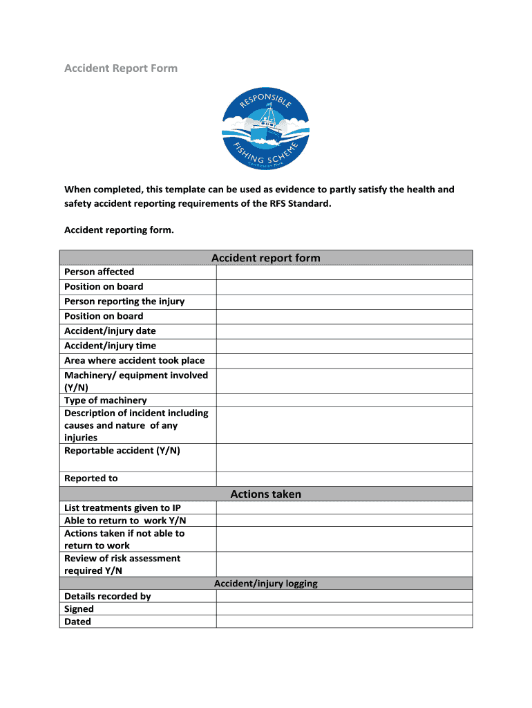 Accident Report Former completed, this template can be used as evidence to partly satisfy the health and