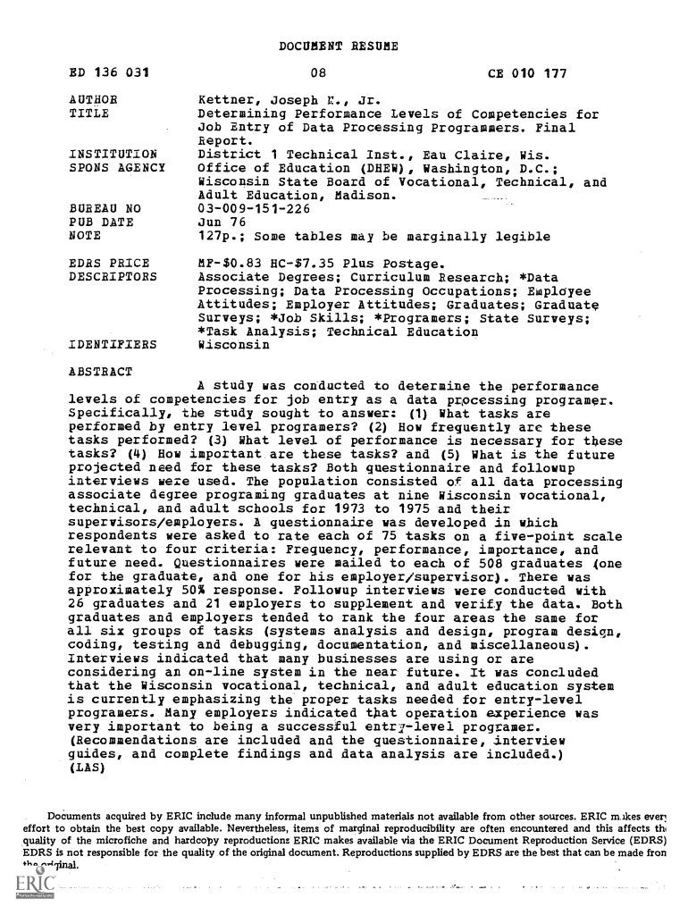 Job Entry of Data Processing Programmers. FinalINSTITUTION