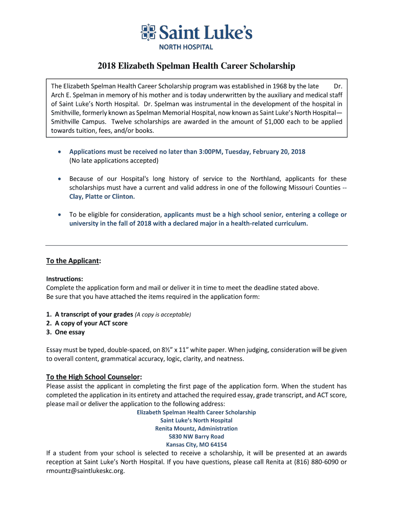 Get the free Elizabeth Spelman Foundation - Saint Luke's Health System