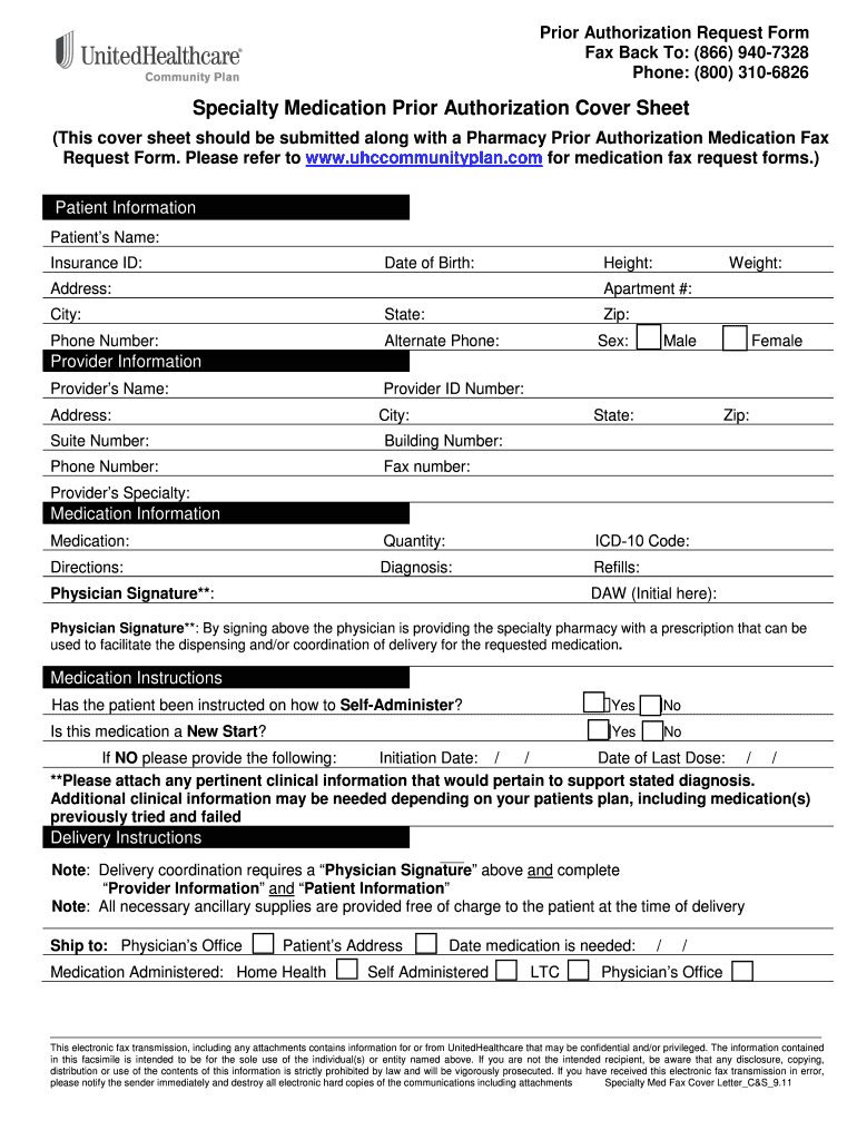 Phone: (800) 3106826Specialty Medication Prior Authorization Cover Sheet