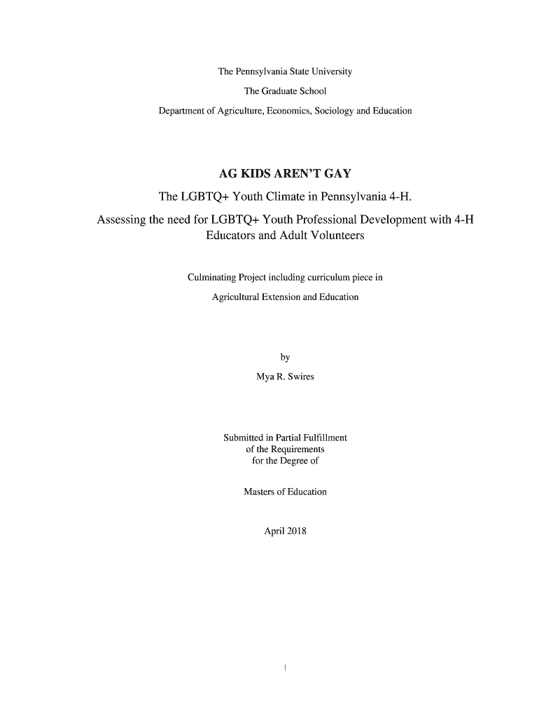 Department of Agriculture, Economics, Sociology and Educational KIDS AREN'T GAY