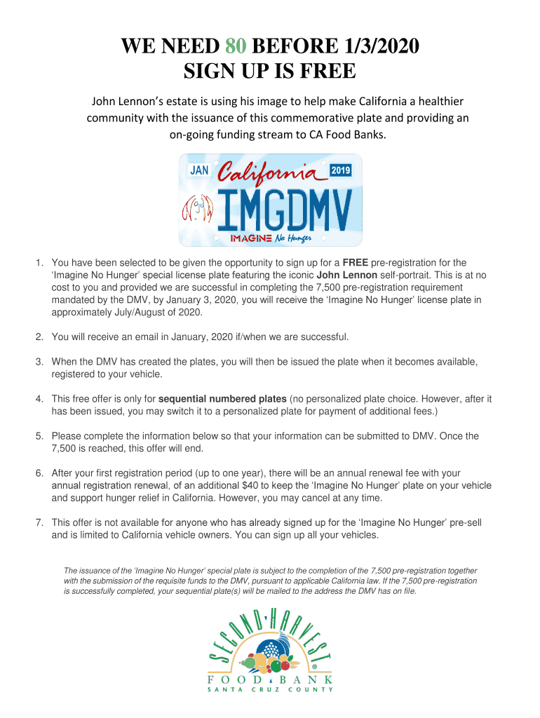 Get the we need 80 before 1/3/2020 sign up is free - Second Harvest ...