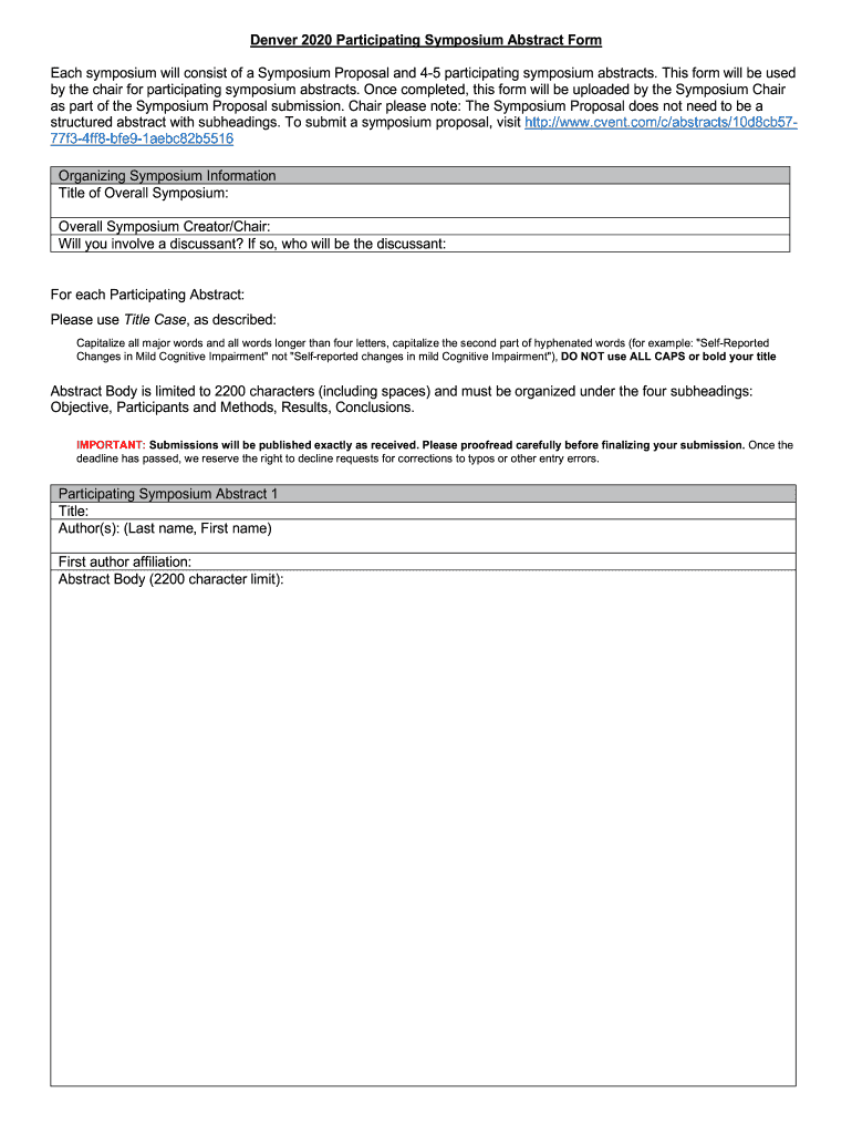 Get the free Denver 2020 Participating Symposium Abstract Form Each ...