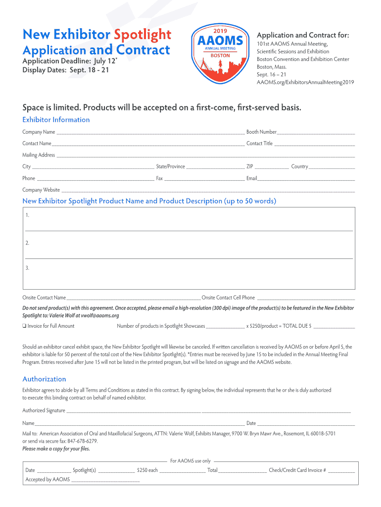 New Exhibitor SpotlightYour oneandonly opportunity to SPOTLIGHT your company! Application and Contract for: 101st ATOMS Annual Meeting, Scientific Sessions and Exhibition Boston Convention and Exhibition