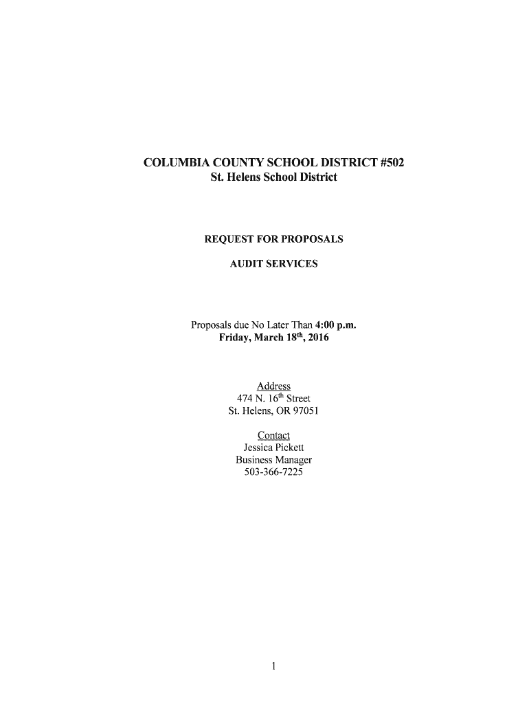 St. Helen's School DistrictREQUEST FOR PROPOSALS