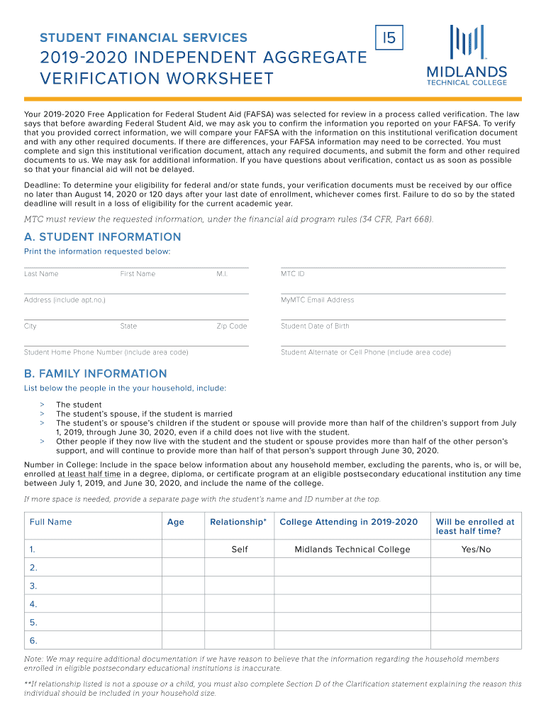 VERIFICATION WORKSHEETI5Your 20192020 Free Application for Federal Student Aid (FAFSA) was selected for review in a process called verification.