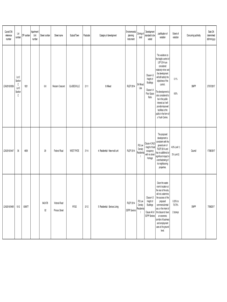 Council DA reference numberLDA2016/0058LDA2016/0447LDA2016/0495Lot DP number Lot 2 Section C Lot 3 Section C36101218214609Apartment/ Unit numberStreet number6829Street name Western Crescent Federal