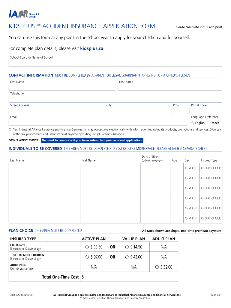 RESET FORBIDS PLUS ACCIDENT INSURANCE APPLICATION FOOTPRINT Formulas complete in full and printout can use this form at any point in the school year to apply for your children and for yourself.