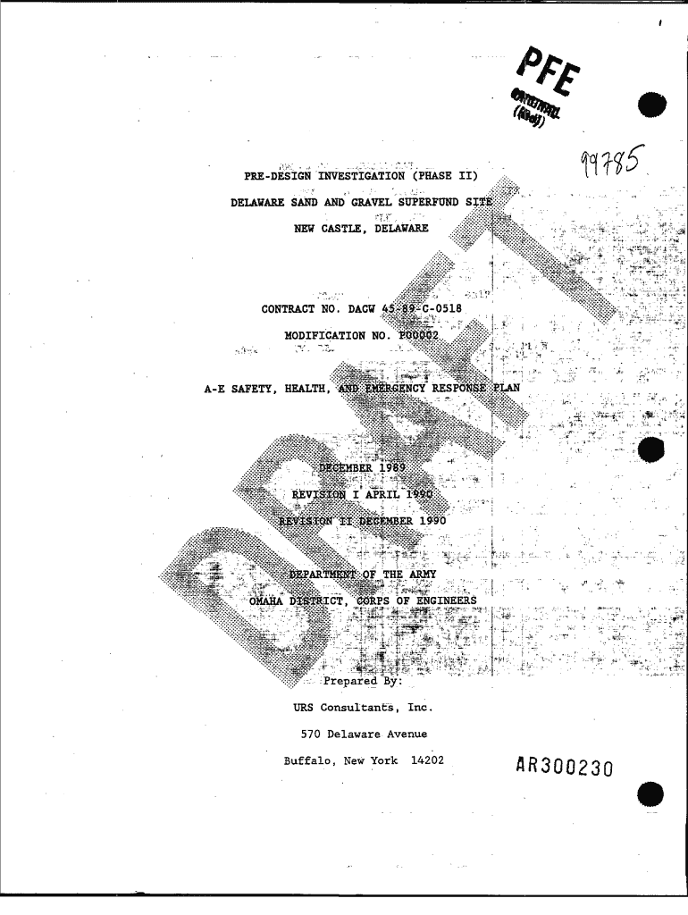 PREDESIGN INVESTIGATION (PHASE II) DELAWARE SAND AND* GRAVEL SUPERFUND NEW CASTLE, DELAWARECONTRACT NO. DAC QgjtjjPV “. '.j f S. i;5? M×3VsaferAE SAFETY, HEALTH, g N “Vs : ft A Kl. E;i Y: LPP,,,:;