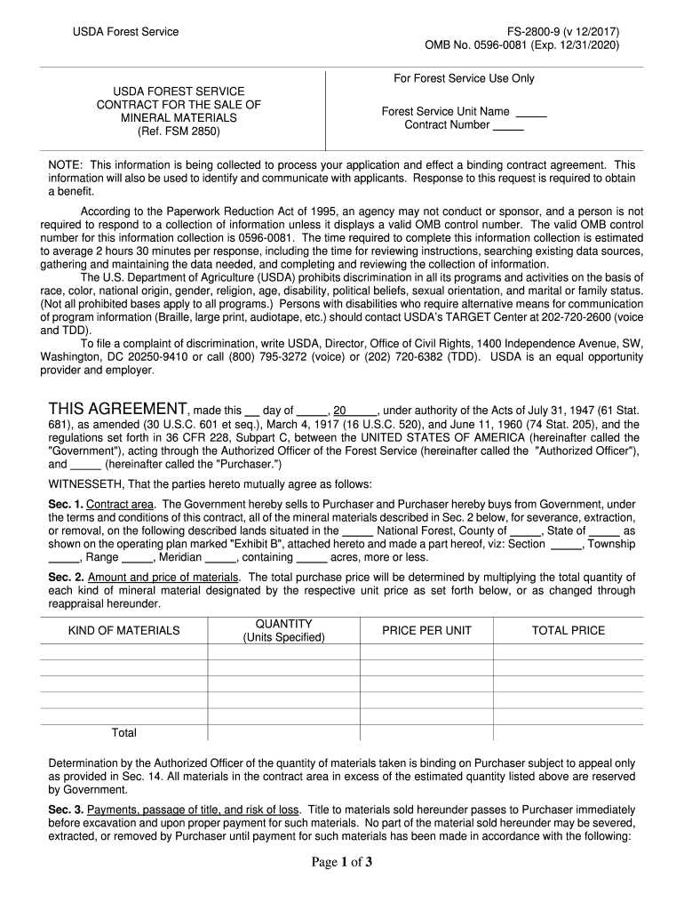 Get the free USDA Forest Service Contract for the Sale of Mineral Materials