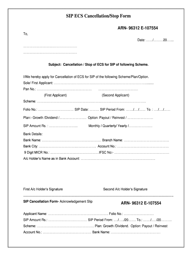 By utilizing the SIP ECS Cancellation Form, investors can ensure that their cancellation is processed smoothly and in compliance with mutual fund procedures.
