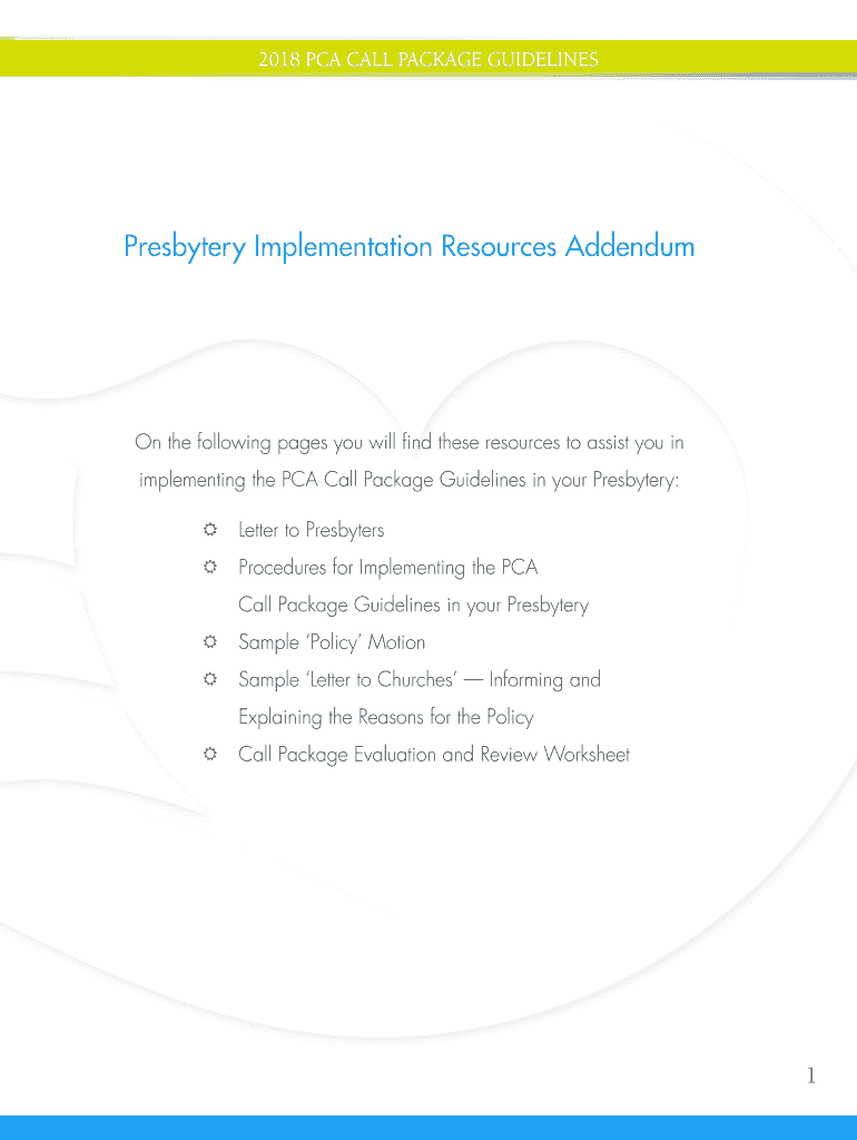 2018 PCA Call Package GUIDELINESPresbytery Implementation Resources Addendum the following pages you will find these resources to assist you in implementing the PCA Call Package Guidelines in your