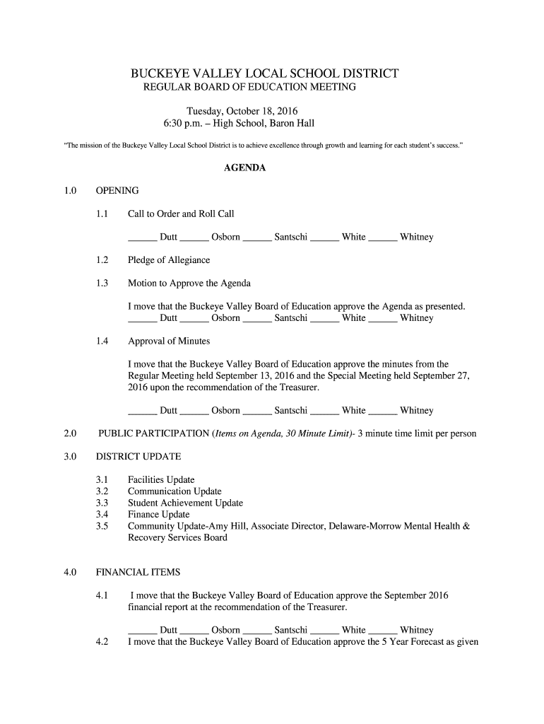 Get the free BUCKEYE VALLEY LOCAL SCHOOL DISTRICT REGULAR BOARD OF ...