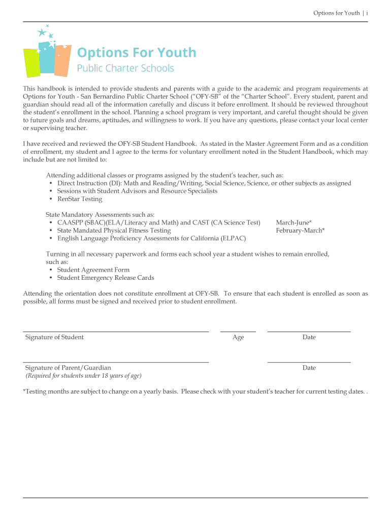 Options for Youth this handbook is intended to provide students and parents with a guide to the academic and program requirements at Options for Youth San Bernardino Public Charter School (OFFS of