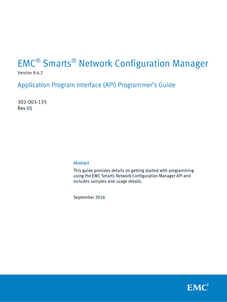 Get the free EMC Smarts Network Configuration Manager Version 9.4.2 Application Program Interface...
