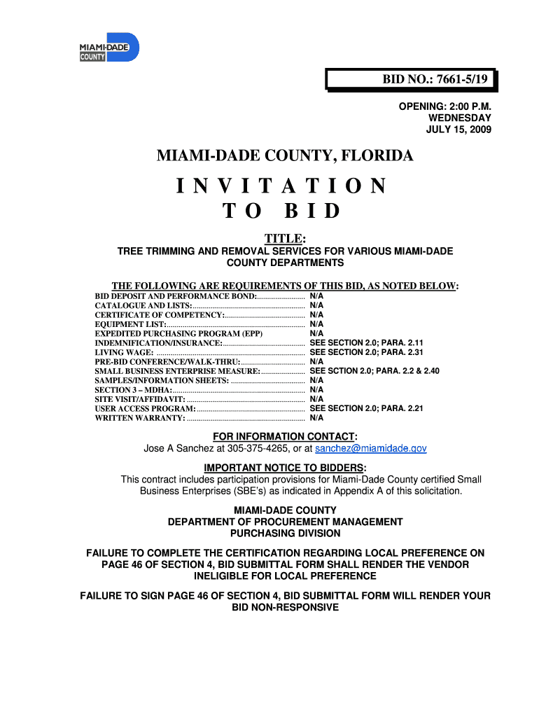 Get the free 7661-5-19 BID TREE TRIMMING AND REMOVAL SERVICES