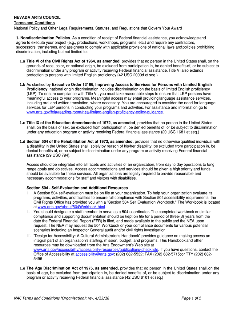 Get the free NEVADA ARTS COUNCIL Terms and Conditions National Policy ...