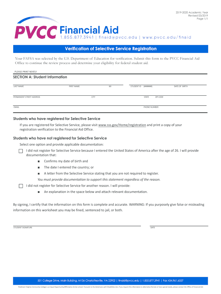 Get the free Verification of Selective Service Registration - Piedmont ...