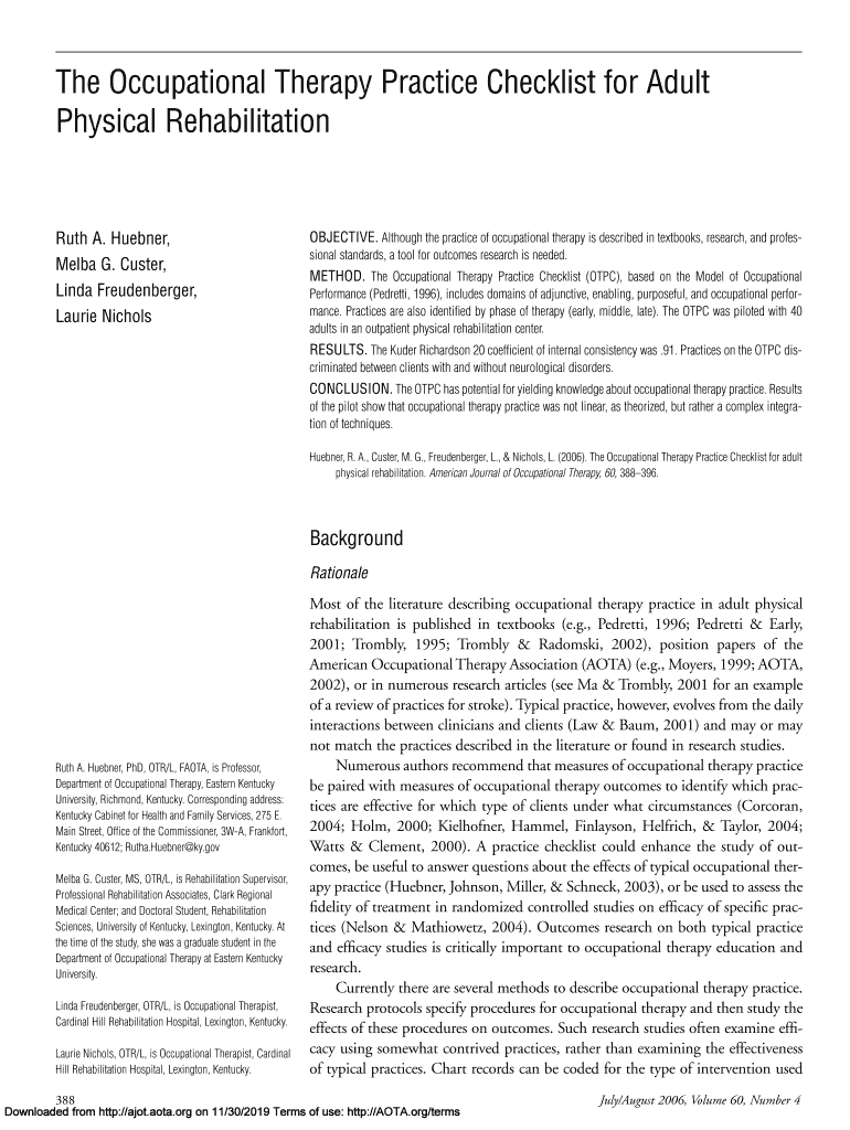 Get the free The Occupational Therapy Practice Checklist for Adult ...