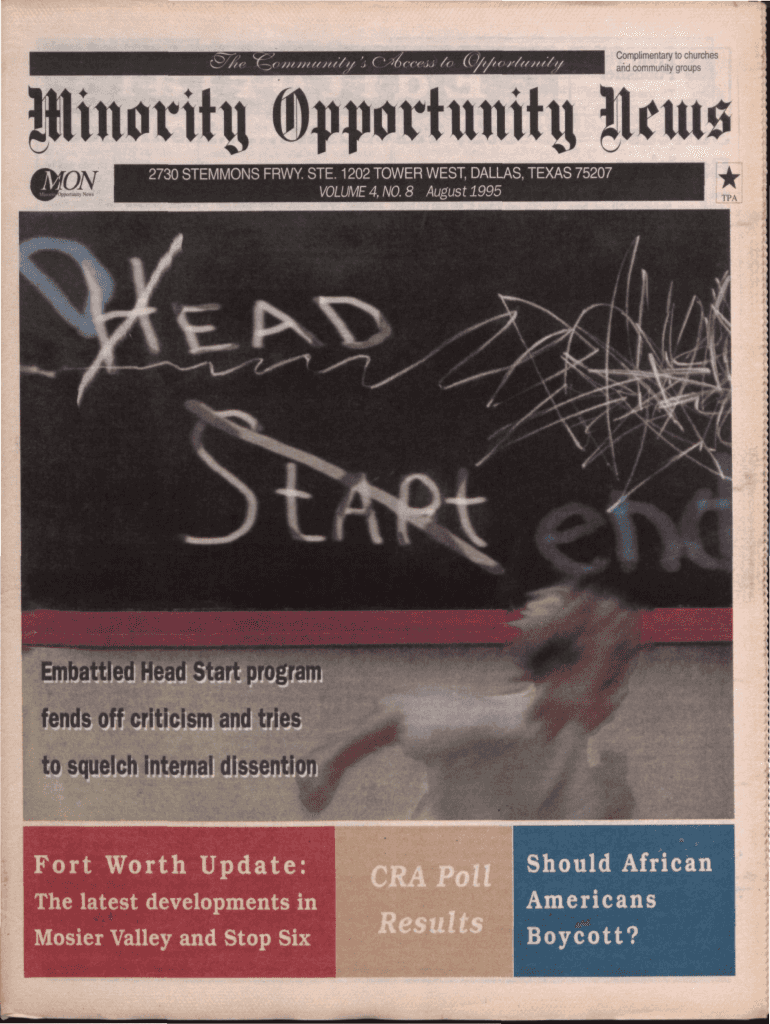 Complimentary to churches arid community groupspinorttu fortuity quo 2730 SERMONS FRY. STE. 1202 TOWER WEST, DALLAS, TEXAS 75207 VOLUME 4, NO. 8 August 1995fends off criticism and tries to squelch