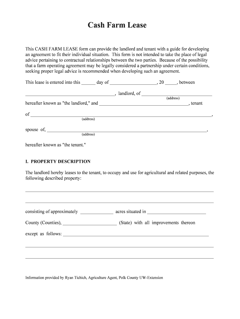 This CASH FARM LEASE form can provide the landlord and tenant with a guide for developing
