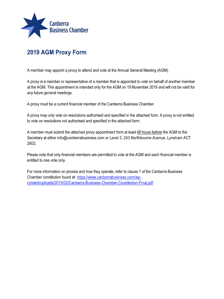 Get the free 2019 AGM Proxy Form - canberrabusiness.com