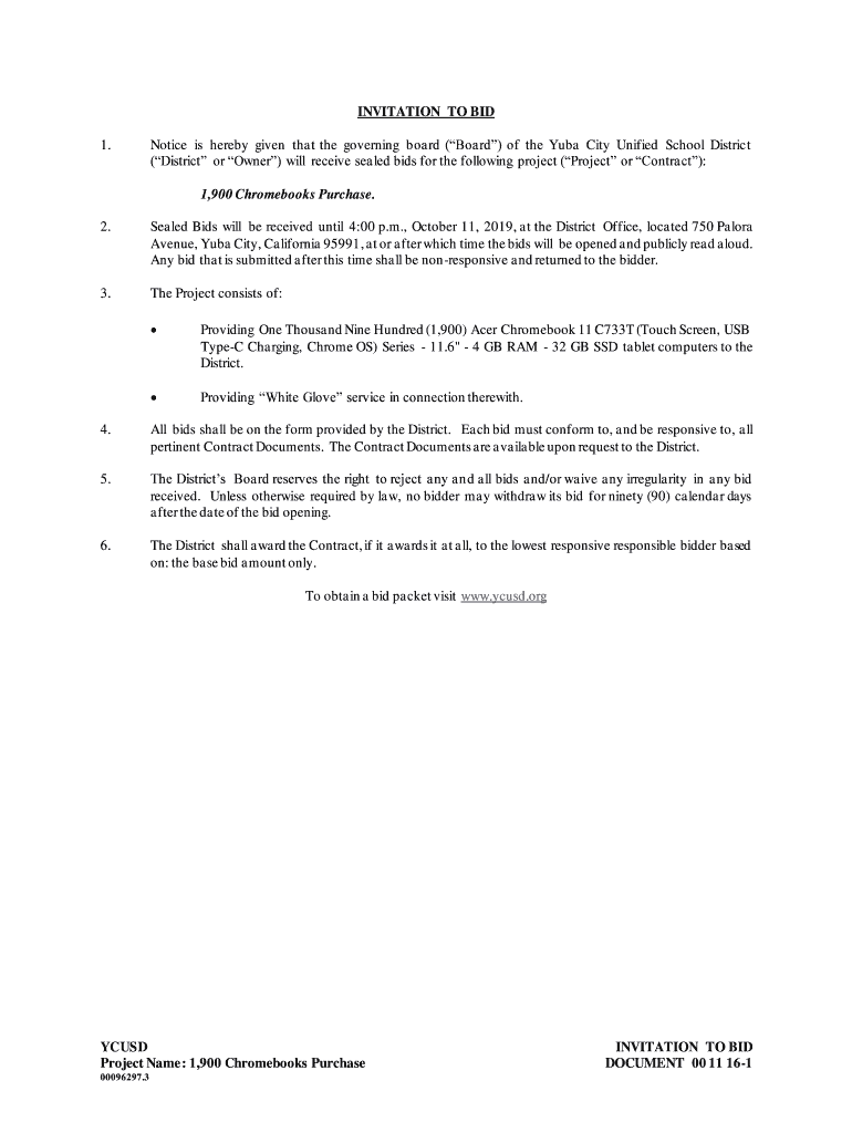 1. Notice is hereby given that the governing board (Board) of the Cuba City Unified School District