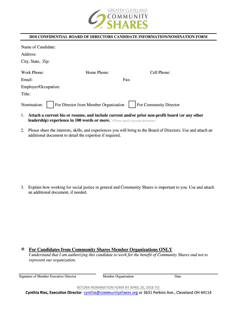 Get the free 2018 CONFIDENTIAL BOARD OF DIRECTORS CANDIDATE INFORMATION/NOMINATION FORM