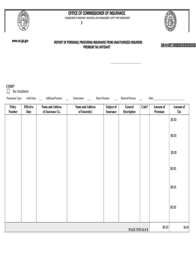 OFFICE OF COMMISSIONER OF INSURANCECOMMISSIONER OF INSURANCE INDUSTRIAL LOAN COMMISSIONER SAFETY FIRE COMMISSIONERJRKQ).LBJ, Commissioner2 Martin Luther King Jr., Dr., Suite 916, West Tower, Atlanta,