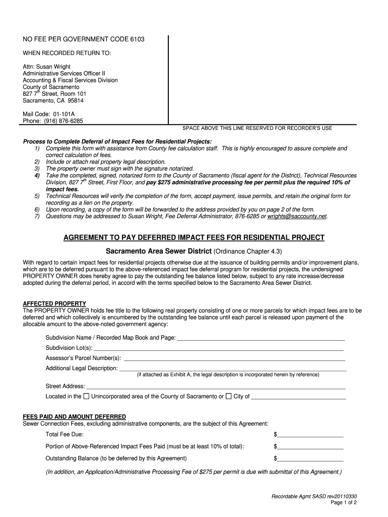 Get the free AGREEMENT TO PAY DEFERRED IMPACT FEES FOR ...