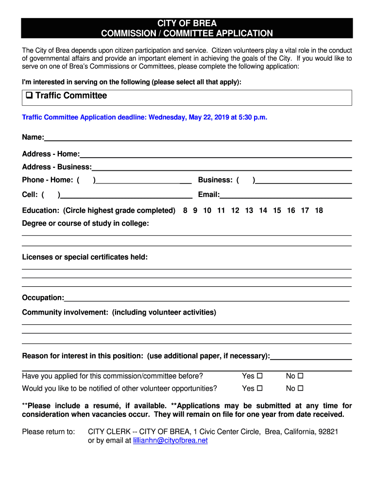 Get the free Commissions & CommitteesBrea, CA - Official ... - City of Brea