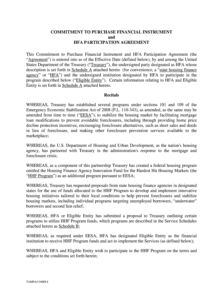 Get the free COMMITMENT TO PURCHASE FINANCIAL INSTRUMENT ...