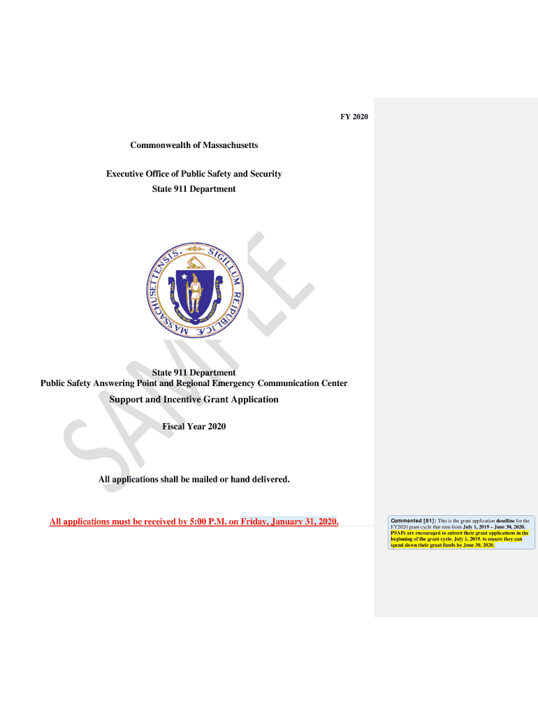 FY 2020Commonwealth of Massachusetts Executive Office of Public Safety and Security State 911 DepartmentState 911 Department Public Safety Answering Point and Regional Emergency Communication CenterSupport