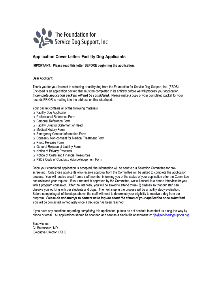 IMPORTANT: Please read this letter BEFORE beginning the application.