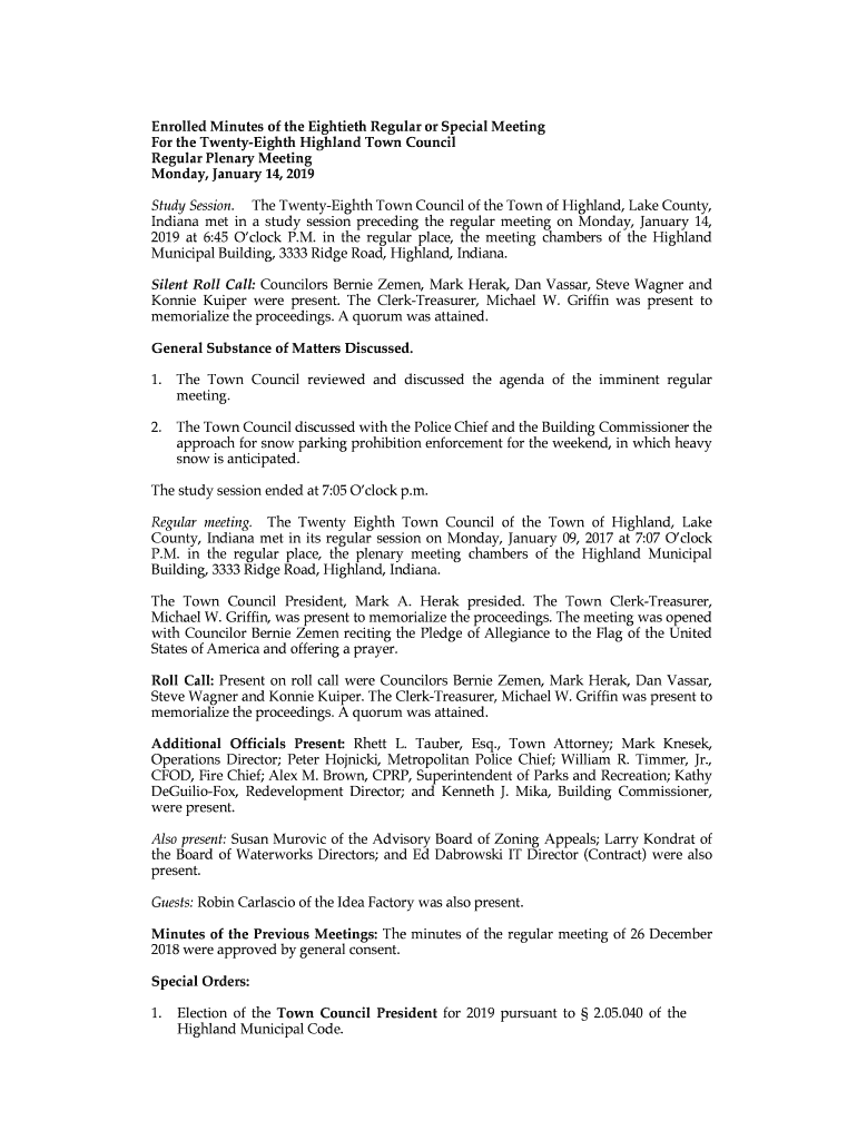 Enrolled Minutes of the Eightieth Regular or Special Meeting